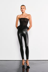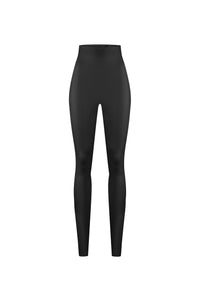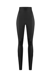 Чорні легінси з високою посадкою виконані з ексклюзивного 4D-стрейч веганського матеріалу, який дихає і забезпечує комфорт у будь-який сезон. Легкий компресійний ефект делікатно формує фігуру, створюючи плавний і гармонійний силует. Мінімалістичний крій без додаткових деталей дозволяє легко поєднувати легінси з різними елементами гардероба, створюючи продумані багатошарові образи і підкреслюючи сучасну стриману естетику.