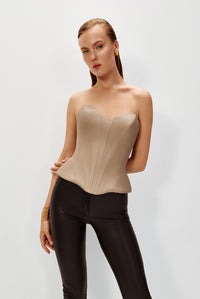 Корсет із чітким силуетом та серцеподібним вирізом створений для того, щоб підкреслювати жіночність і силу водночас. Структурований крій ідеально окреслює фігуру, а універсальний дизайн дозволяє носити його як самостійно, так і в поєднанні з блейзером чи костюмним комплектом.