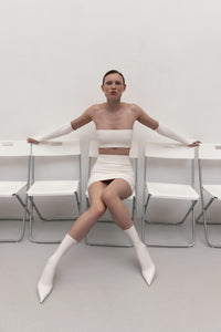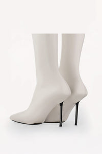 Цей аксесуар — сміливе переосмислення сучасного взуття. Створені з нашої ексклюзивної 4D стрейч-веганської шкіри, ці шкарпетки мають вбудовану підошву, що поєднує комфорт зі стилем. Їх скульптурний дизайн безшовно облягає ступню, створюючи витончений силует, який ідеально поєднується з нашими бестселерами — комбінезоном, легінсами та іншими виробами. Ідеальні для створення виразного монохромного образу або додавання контрастного акценту, ці шкарпетки принесуть елегантність та інновації в кожен ваш крок.
