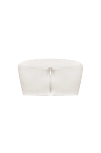 Молочний бандо-топ виконаний із надзвичайно м’якої 4D-стрейч веганської шкіри. Чистий, мінімалістичний крій дозволяє топу легко поєднуватися з різними елементами гардероба, створюючи продумані багатошарові образи. Його універсальність дозволяє інтегрувати виріб у денні та вечірні луки, додаючи стриману елегантність і сучасний характер.