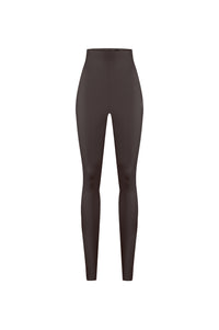 Коричневі легінси з високою посадкою виконані з ексклюзивного 4D-стрейч веганського матеріалу, який дихає і забезпечує комфорт у будь-який сезон. Легкий компресійний ефект делікатно формує фігуру, створюючи плавний і гармонійний силует. Мінімалістичний крій без додаткових деталей дозволяє легко поєднувати легінси з різними елементами гардероба, створюючи продумані багатошарові образи і підкреслюючи сучасну стриману естетику.