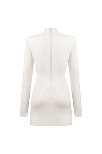 Випробуйте новий рівень сучасної класики в нашій силуетній міні-сукні молочного кольору, що поєднує інноваційний матеріал з неперевершеним комфортом. Завдяки нашій ексклюзивній 4D-стрейч веганській шкірі, виріб бездоганно облягає вашу фігуру. Силует «пісочний годинник» у поєднанні з витонченими структурними підплічниками не лише додає унікального вигляду, але й не залишить байдужими навіть найвибагливіших.